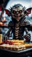 full body portrait of a vampire werewolf gremlin with mustage eating cheese doodles and the blood of fish on a viking ship, in the style of Giger,bokeh like f/0.8, tilt-shift lens 8k, high detail, smooth render, down-light, unreal engine, prize winning