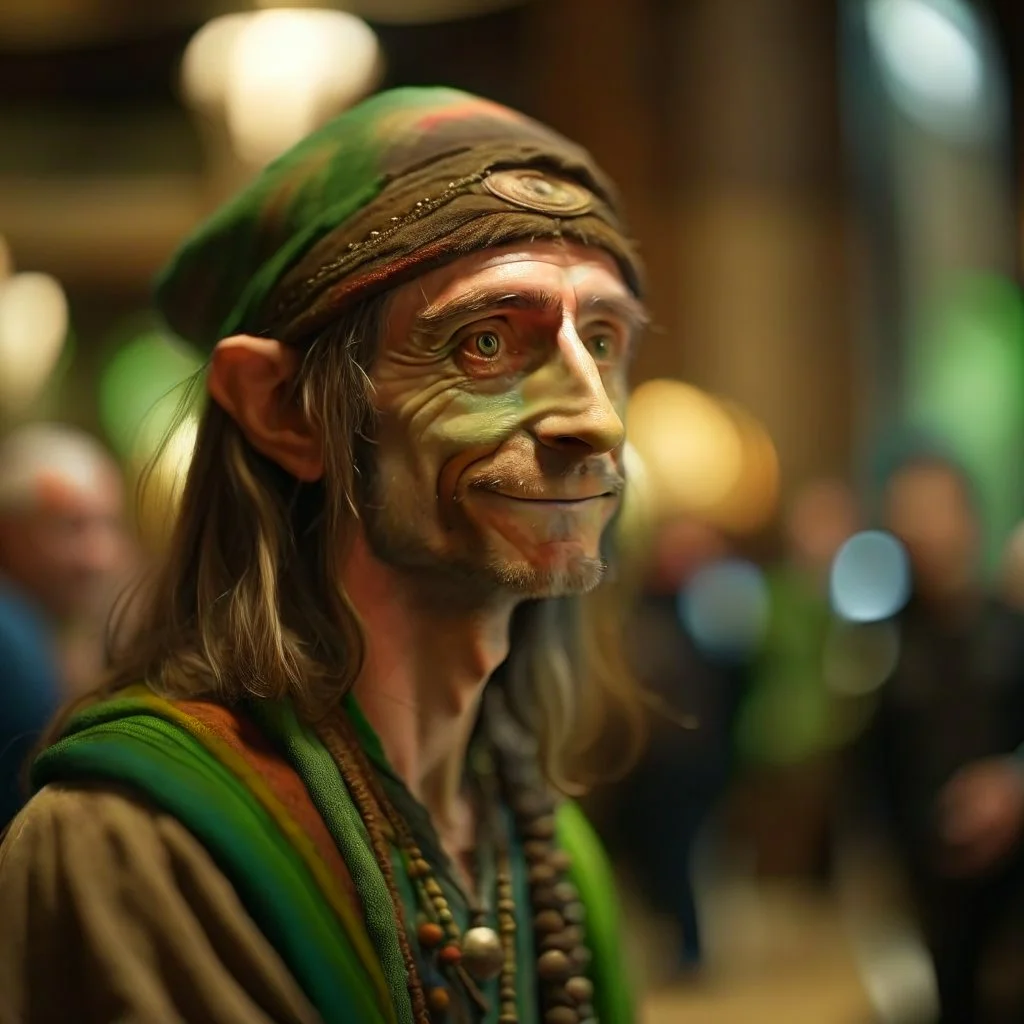 portrait of hippie wood elf in royal ancient concert hall , photo-realistic, shot on Hasselblad h6d-400c, zeiss prime lens, bokeh like f/0.8, tilt-shift lens 8k, high detail, smooth render, down-light, unreal eng