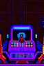 Govus on the Cockpit of a spaceship, alarm ringing, red indicator lit. Pixel art