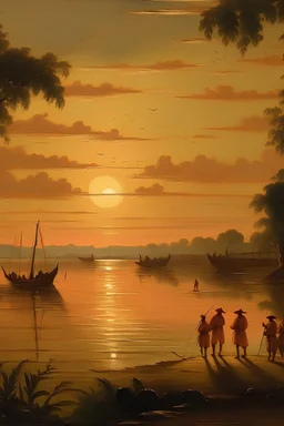 watercolor painting of cheenavala, chinese fishing net, river side , kochicoconut trees, pen line sketch and watercolor painting ,Inspired by the works of Daniel F. Gerhartz, with a fine art aesthetic and a highly detailed, realistic style