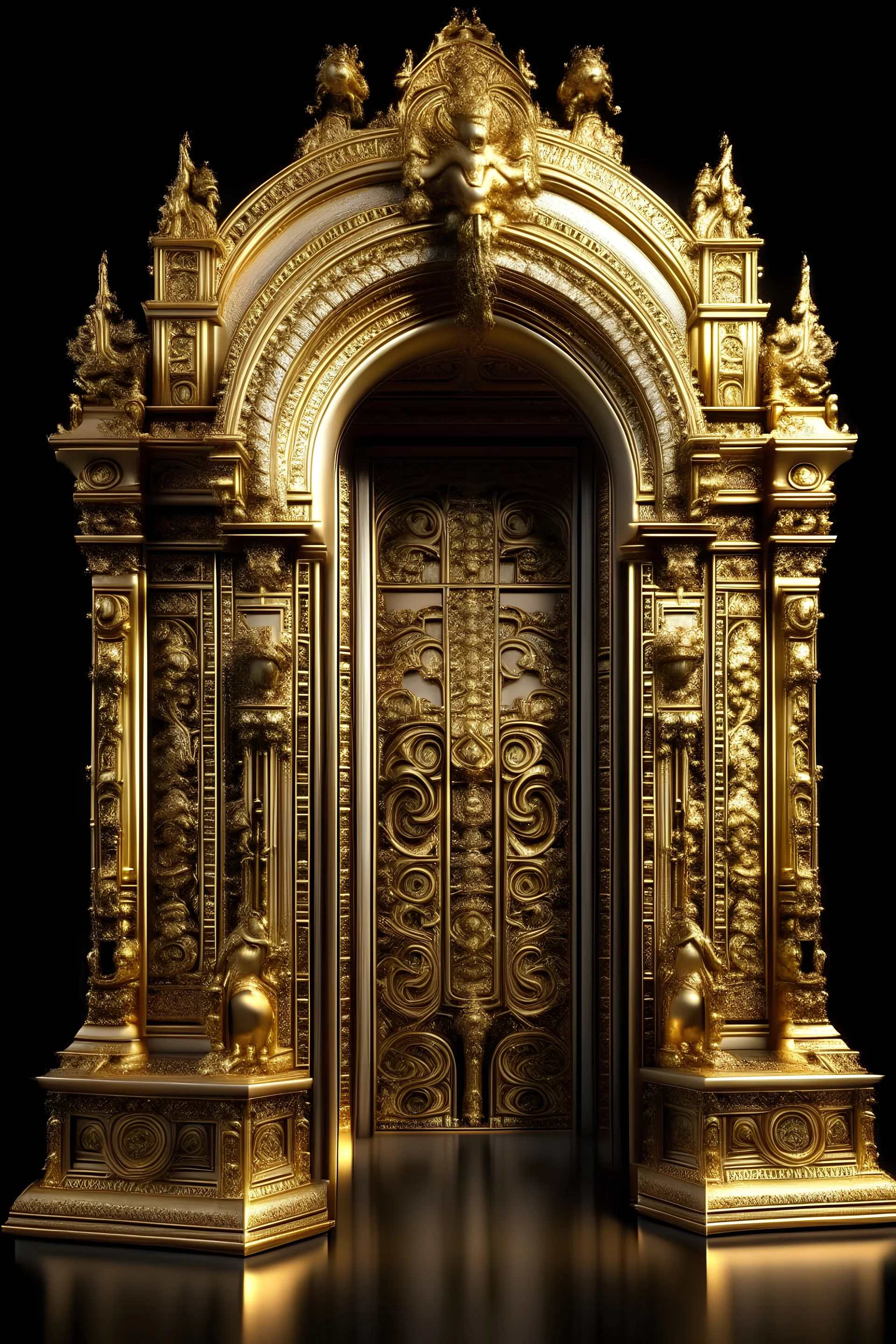 Describe the "Gateway to New Jerusalem" in meticulous detail, highlighting every facet of its awe-inspiring beauty. From the shimmering gold full of glory to the intricate architecture, create an ultra-realistic masterpiece of words that transports the reader into this heavenly realm. Capture the essence of peace and divine presence as one approaches this gateway.The door is made of pearls.