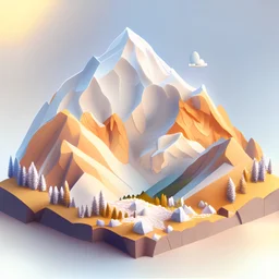 Beautiful nature, houses, Mountains, trees, papercurl illustration.