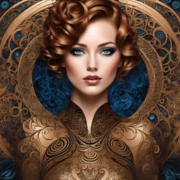 full body portrait Pretty woman ,blond wavy short hair, ,luminous, jelly oiled shiny shinest, glistening, dazzlings pink dress, complex background with beige golden blue mandala zentangle spiral maximalist . masterpiece art ,meticulously composed, 8k"