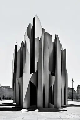 A minimalist, architectural line drawing of a famous landmark building, using only simple lines and geometric shapes to capture the essence of its form and design, set against a monochromatic background for maximum contrast.