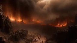 souls partially buried in the rocky ground crawling to get free, in the style of Beksinski, red and black, extremely detailed, dark, extreme horror, glowing embers