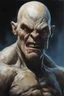 a closeup facial portrait of Ben Grim aka the thing from the Fantastic 4 - extreme action pose - oil painting by Gerald Brom