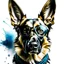 generation generation generation graphic of a German Shepherd dog Rayban black sunglasses, riding waves at the beach, on a white background, graffiti