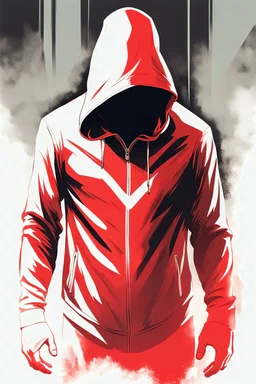 Encapuchado hombre gótico colores negro blanco y rojo calidad ultra maximalista arte lineal full body