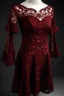 Dark red, off-the-shoulder, lace dress inspired by fractals in geometry.