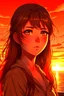 (image: An anime character with flowing hair and intense eyes, standing against a picturesque sunset), Descriptive Keywords: Anime Character, Flowing Hair, Intense Eyes, Sunset, Beauty, Ultra Realistic, Anime, Anime Character Type: Heroine, Camera Lens Type: Wide-angle lens, Camera Aperture Settings: f/2.8, Time of Day: Golden Hour (evening), Style of Anime Character: Strong and Determined, Type of Film: Digital