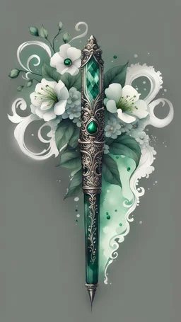 watercolor drawing of a dark Gothic green perfume bottle with emeralds and flowers and white lace, on a white background, Trending on Artstation, {creative commons}, fanart, AIart, {Woolitize}, by Charlie Bowater, Illustration, Color Grading, Filmic, Nikon D750, Brenizer Method, Side-View, Perspective, Depth of Field, Field of View, F/2.8, Lens Flare, Tonal Colors, 8K, Full-HD, ProPhoto RGB, Perfectionism, Rim Lighting, Natural Lighting, Soft Lighting, Accent Lighting, Diffraction Grading, Wit