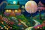 Abstract surrealism, minimalistic art of stitching fabric, a beautiful calm garden with sakura trees, ferns and various flowers, a park bench, chirping birds, a couple walking along a footpath, wide shooting, Japanese art, fine art, brightening the image, the art of floral embroidery. colorful. Gustav Klimt. Thomas Kinkade. Josephine Wall