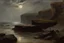 grey sky with planet in the horizon, epic, sci-fi, cliffs, rocky land, puddle, epic, friedrich eckenfelder and alfred stevens impressionism pa