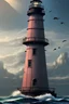 Realistic scenery of pirate ship with lighthouse in the background setvin night scenery tattoo style
