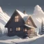an anime style cabin in a blizzard with a snowy mountain in the background