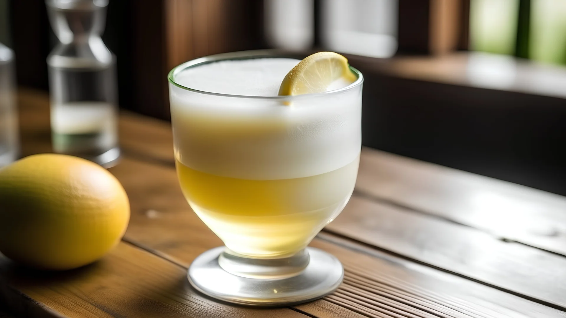 Pisco sour on wooden table natural light