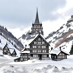 Snowy mountain hill in zermatt. Tiny house in the middle: interesting architecture. Different and unique but still fits into place with the other, typical swiss huts with dark wood and stone.