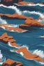 Minimalist illustration bohomein The waves of the blue sea are falling on the shore of the sea, wall art, vibrant colour background