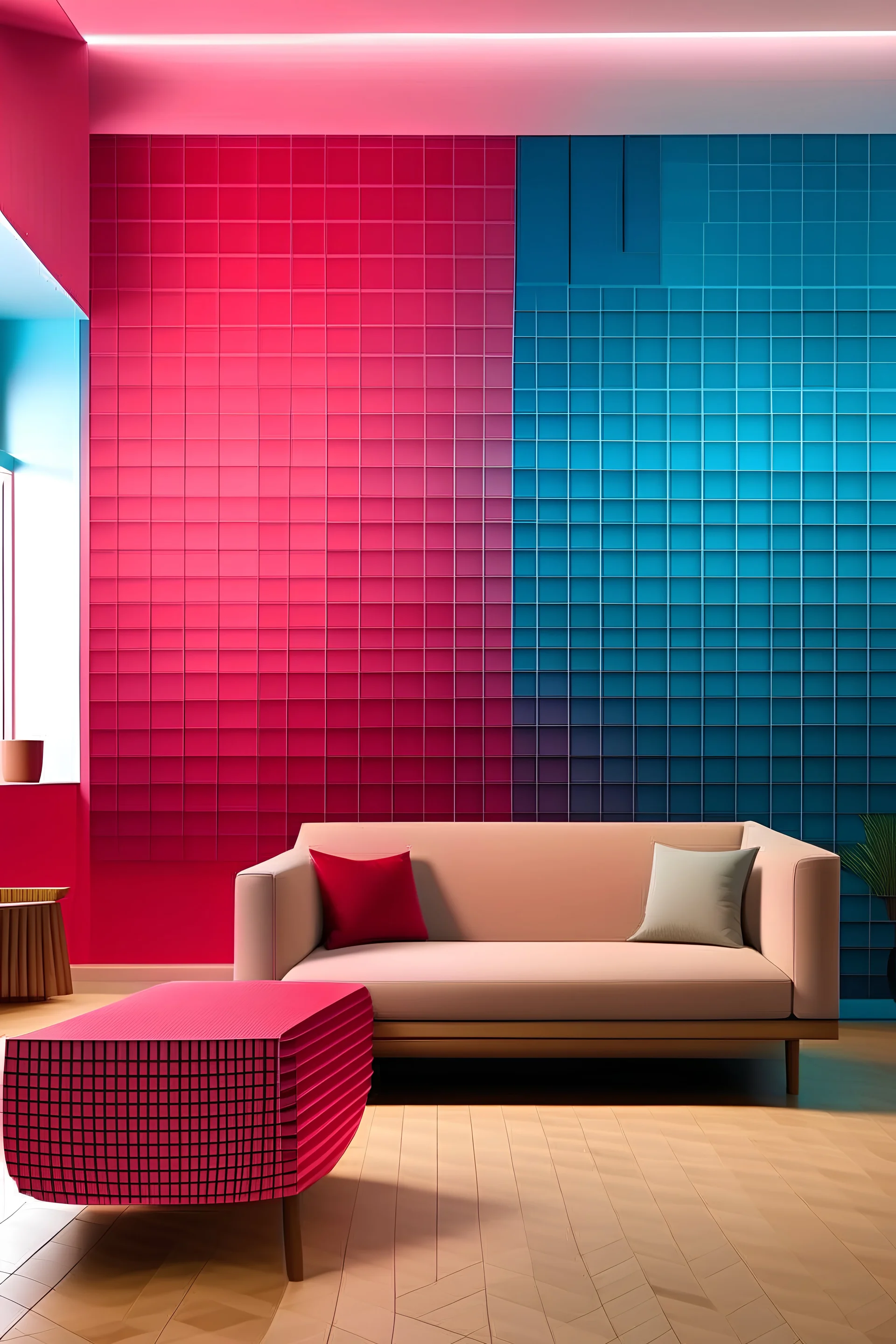 Gradient Ombre: Create a mesmerizing ombre effect by arranging modular panels in a gradient transition of colors, starting from a deep, rich hue and gradually fading into a soft, muted tone. for a living room wall