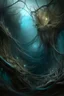 Imagine a complex intertwining of various organic forms - roots, branches, tendrils, perhaps even veins or elongated limbs. Let these forms twist and knot in an intricate, mesmerizing way. Bathe these entanglements in a soft glow emanating from unseen sources. Infuse it with an otherworldly quality – perhaps subtle hints of pearlescent blues, shimmering golds, and ethereal pinks. Position snails prominently. Focus on intricate details of their shells: the spirals, ridges, and textures. Capture